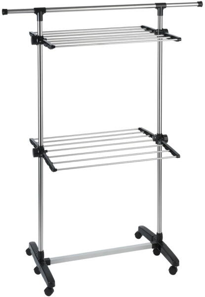 A térkímélő Maximex ruhaszárító ideális segítője azoknak, akik nem engedhetik meg maguknak, hogy helyet pazaroljanak otthonukban. Bár első pillantásra nem tűnik annak, de 11 méter felületet kínál a ruhák felakasztásához. A felső rúd hossza 77 és 120 cm között állítható. A két szárítórész és az alsó rész összecsukható a falhoz való használathoz vagy hatékony tároláshoz - összecsukott állapotban mindössze 12,5 cm széles. A szerkezet tartós rozsdamentes acélból készült, teljes terhelhetősége 15 kg . A csomag 32 csipeszt tartalmaz, amelyek segítségével a kisebb ruhadarabok rögzíthetők.