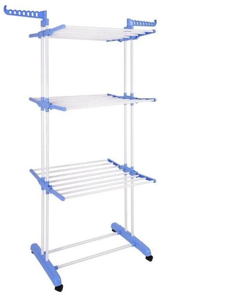 NEXTLY Nextly, Függőleges szárító ruhaneműkhöz és cipőkhöz, 3 szint, akasztós, összecsukható, hordozható, mobil, ergonomikus, kék (USCATOR_VERTICAL_ALBASTRU-115)
